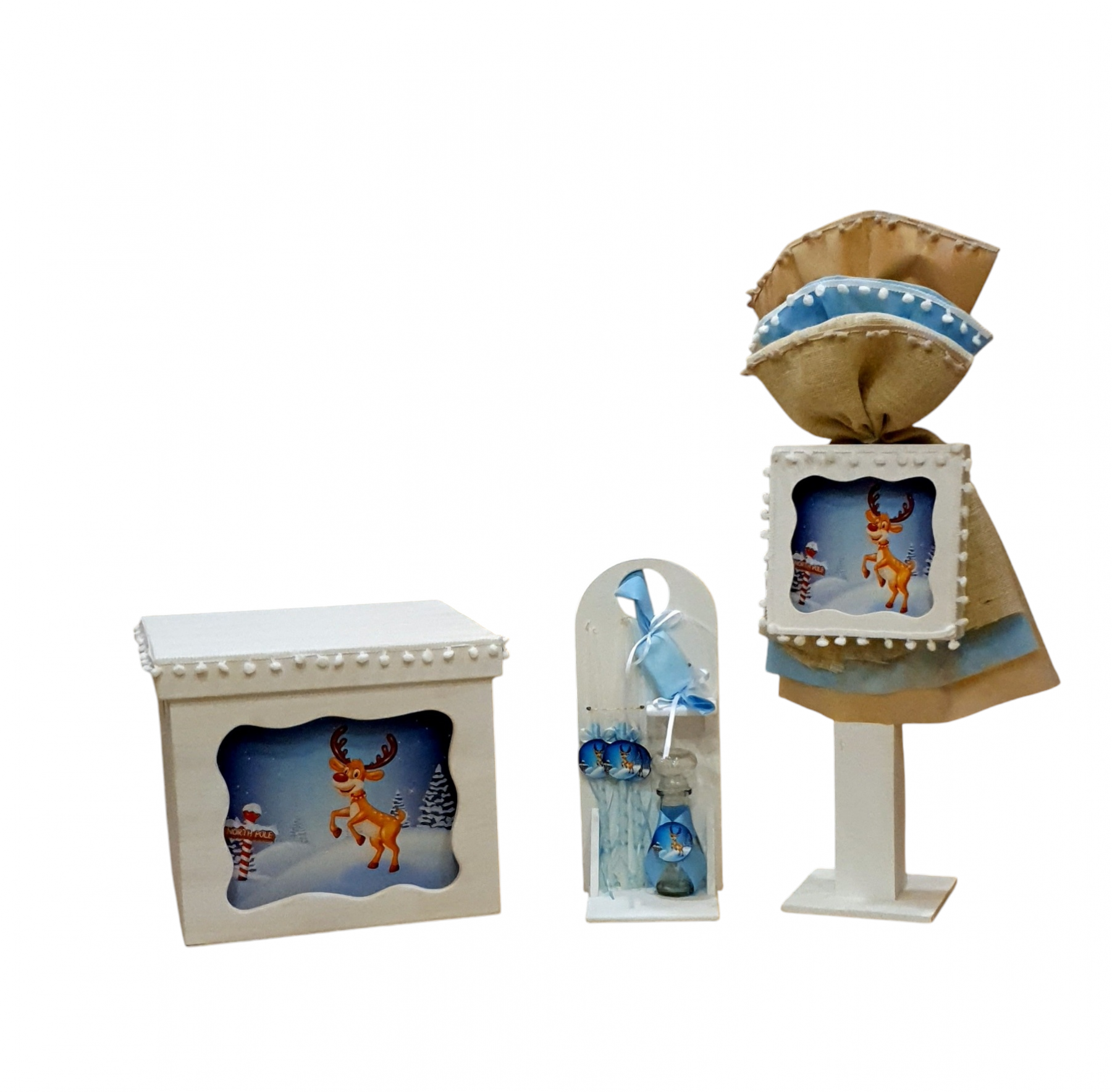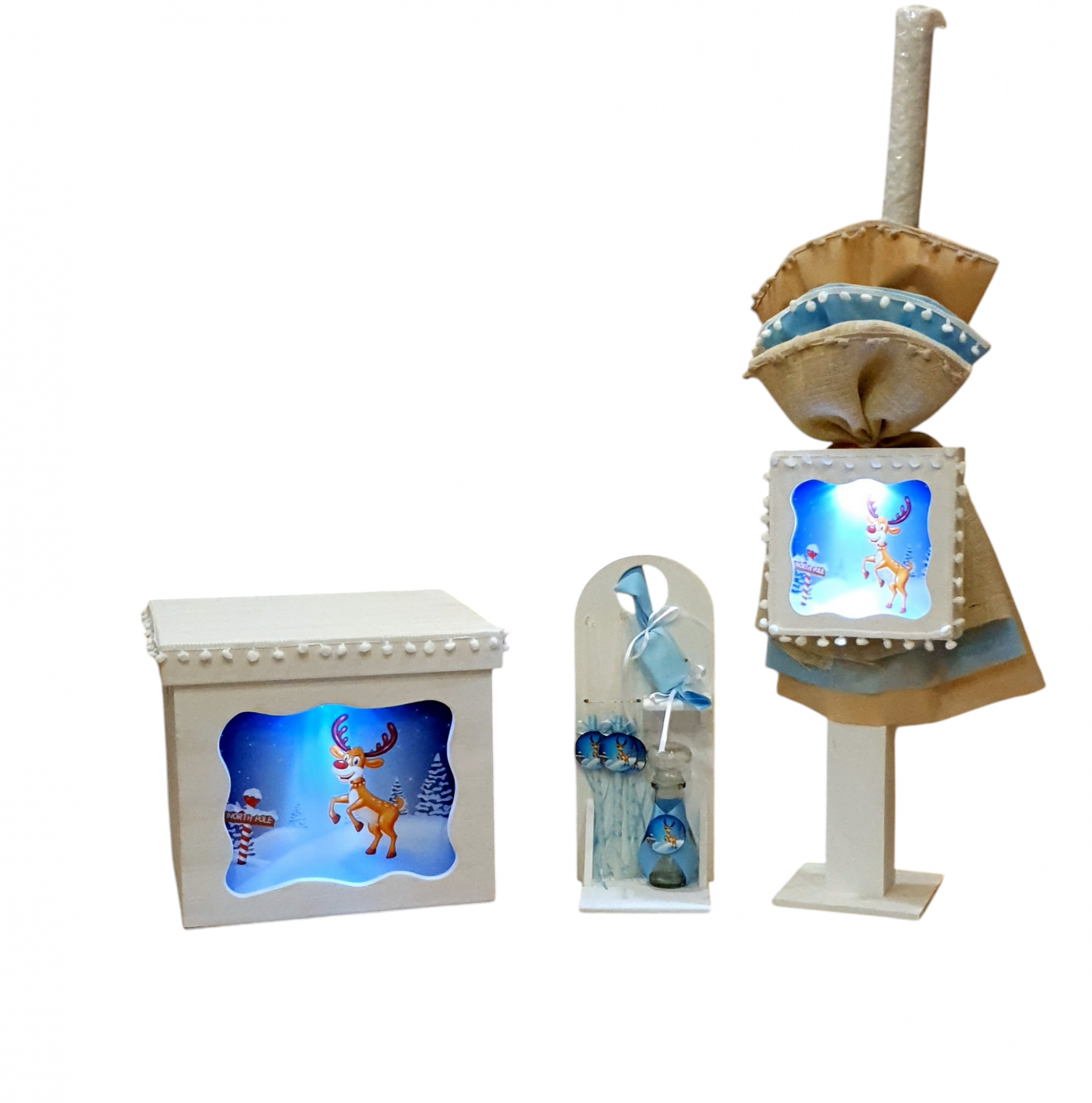 ΧΡΙΣΤΟΥΓΕΝΝΙΑΤΙΟ ΠΑΚΕΤΟ ΜΕ ΞΥΛΙΝΟ ΦΩΤΙΖΟΜΕΝΟ ΚΟΥΤΙ ΚΥΒΟ ΚΑΙ ΦΩΤΙΖΟΜΕΝΗ ΛΑΜΠΑΔΑ, ΣΕ ΘΕΜΑ