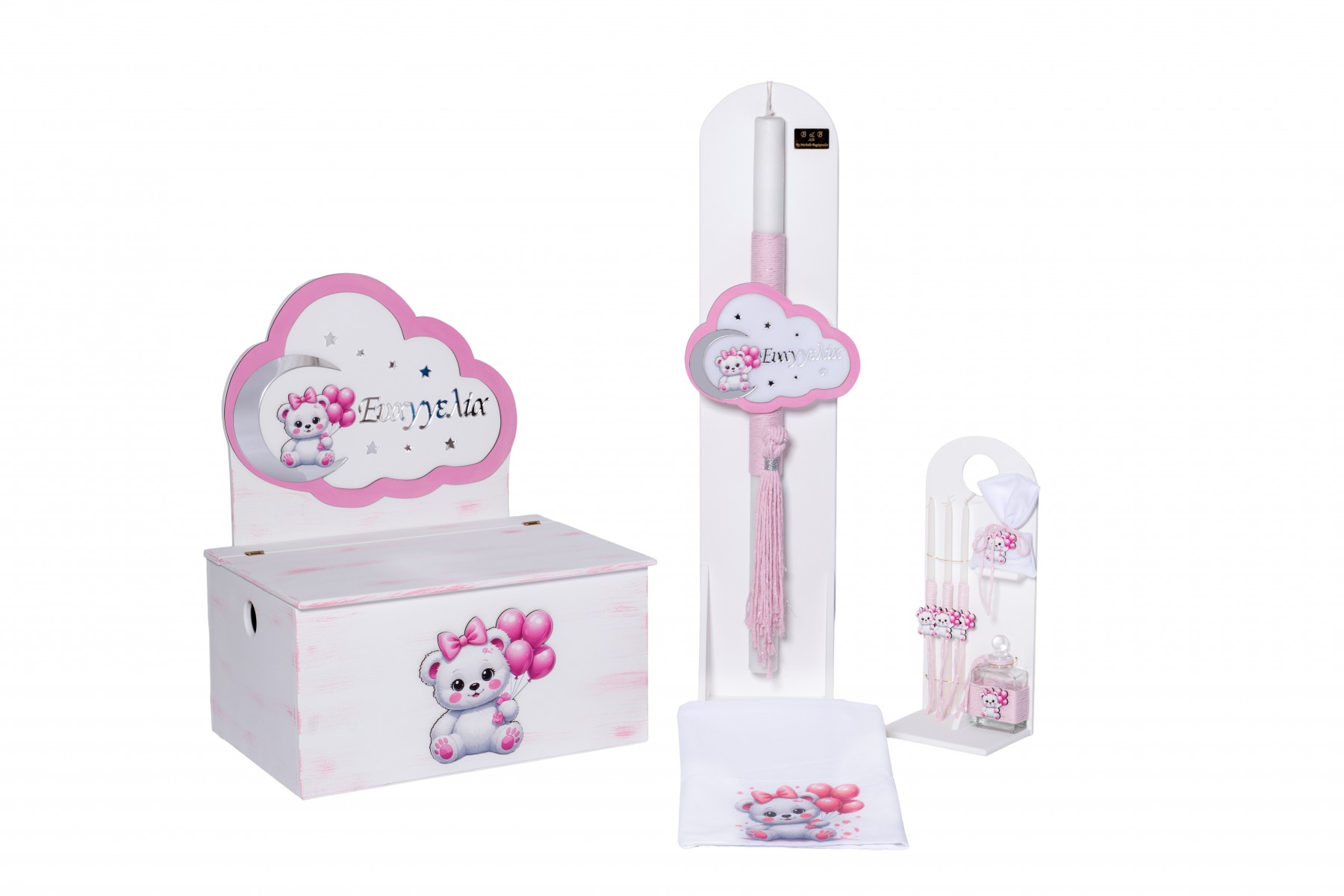 Σετ βάπτισης κορίτσι με θέμα Αρκουδάκι-Συννεφάκι.