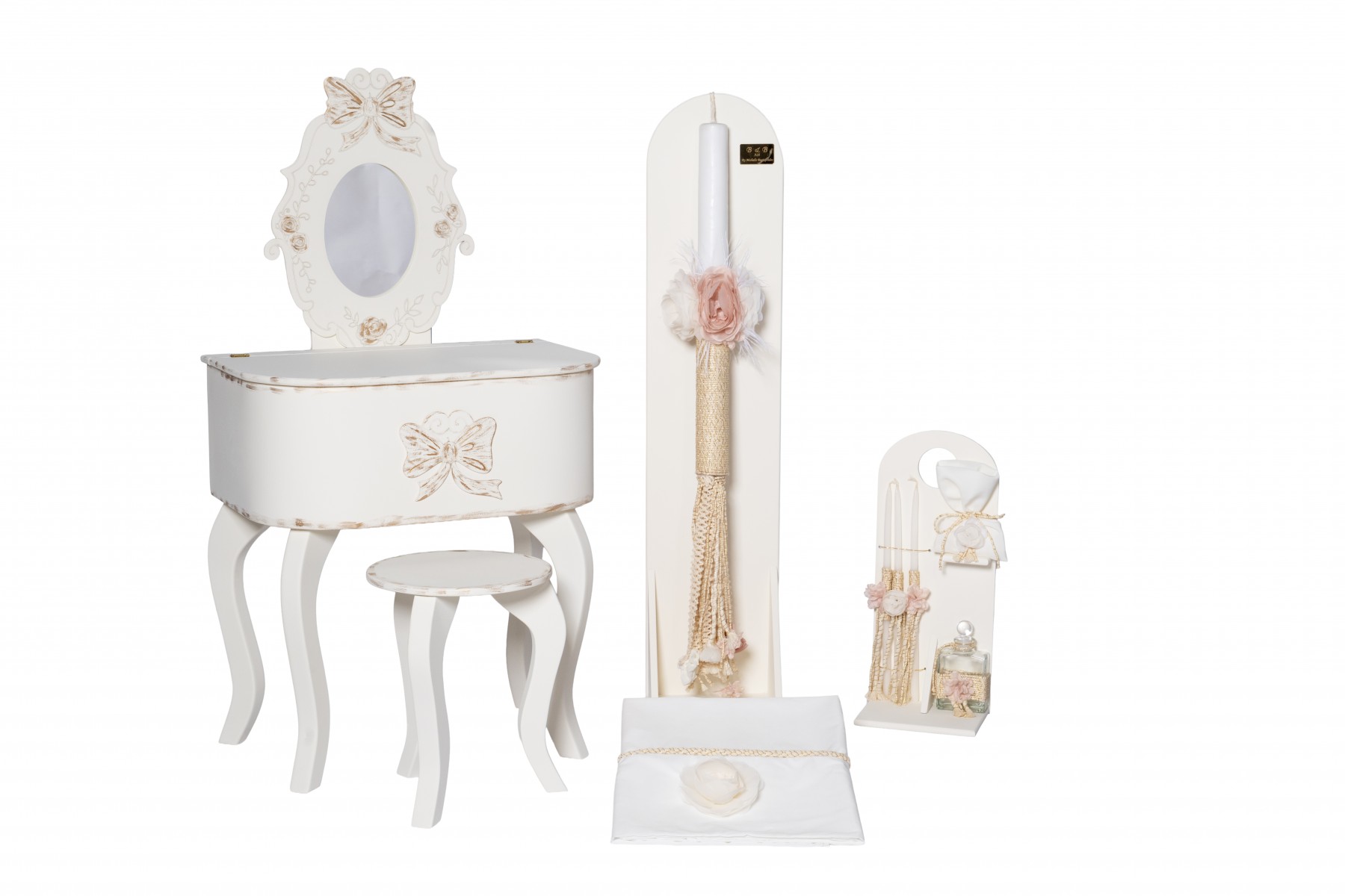 - Βαπτιστικό ξύλινο μπουντουάρ, με φιογκάκια.
