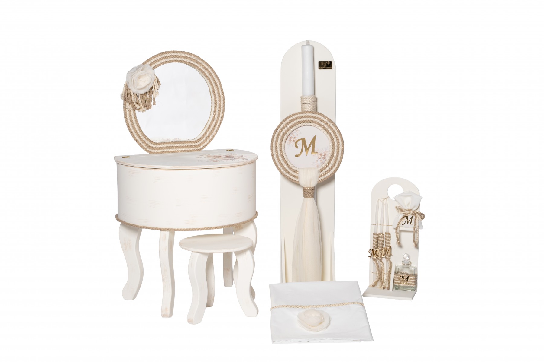 - Βαπτιστικό ξύλινο μπουντουάρ, με ψηφιακή εκτύπωση και επενδυμένο κραθρέφτη.