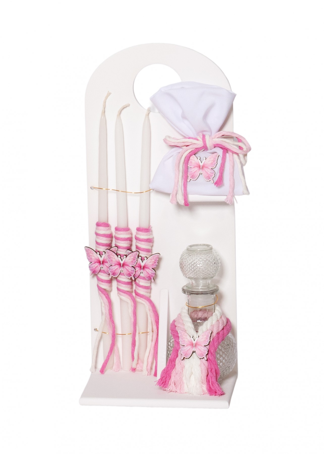 Σετ βάπτισης κορίτσι με θέμα Λουλούδια και το Μονόγραμμα του παιδιού.