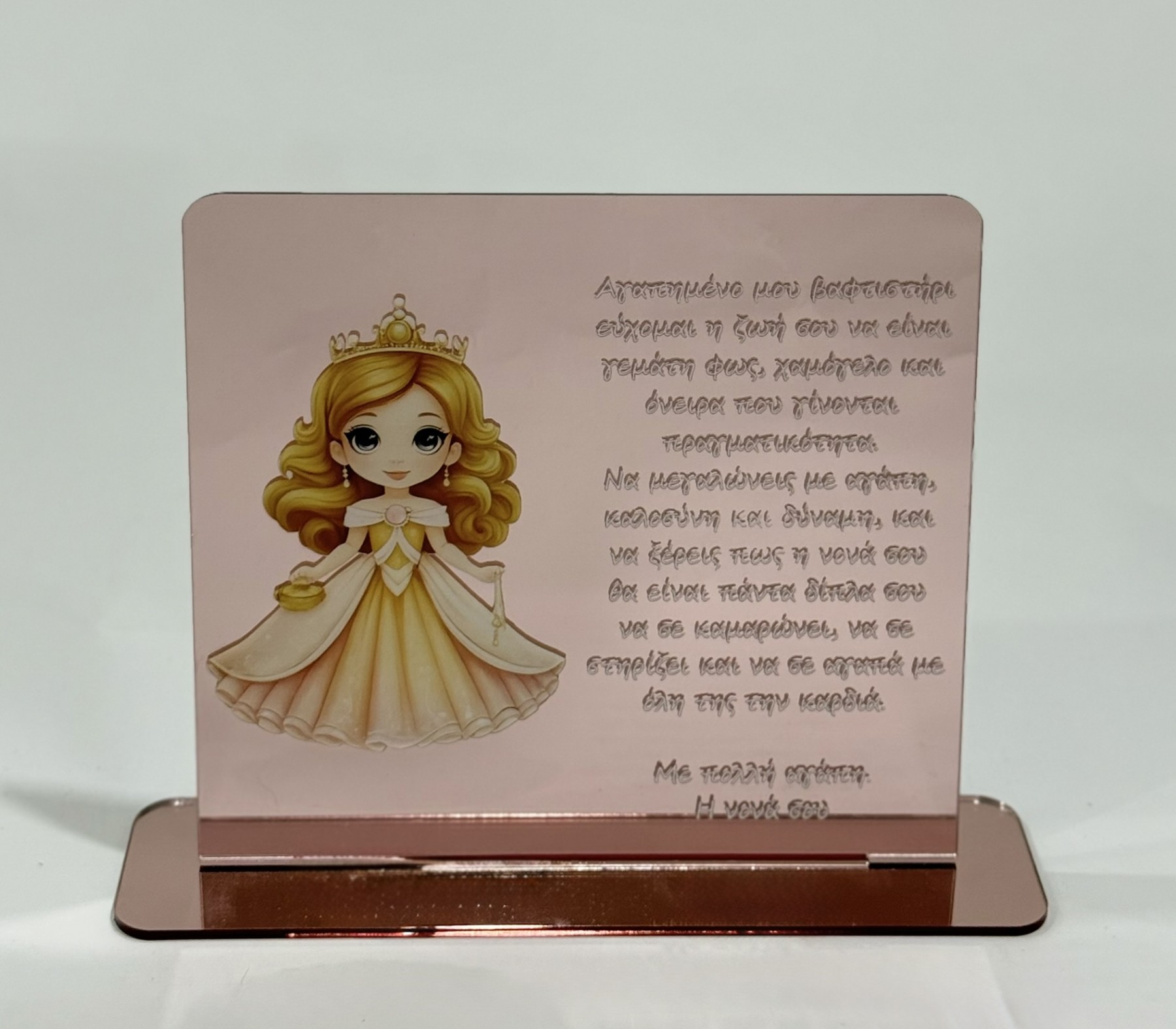 Αφιέρωση με ψηφιακή εκτύπωση σε plexiglass καθρέφτη.